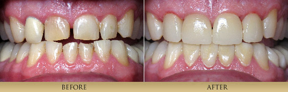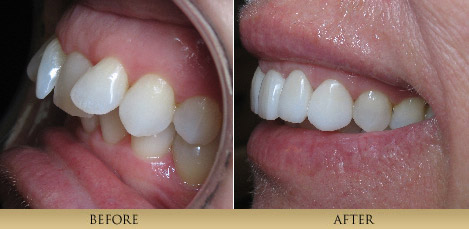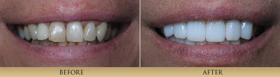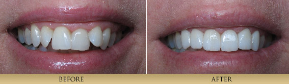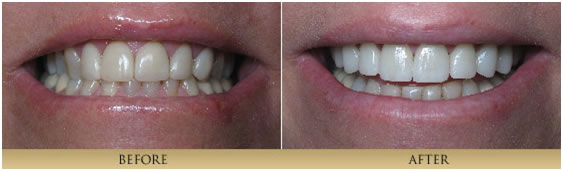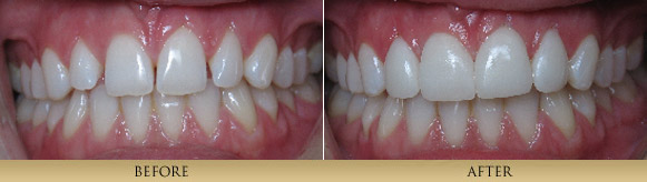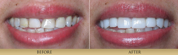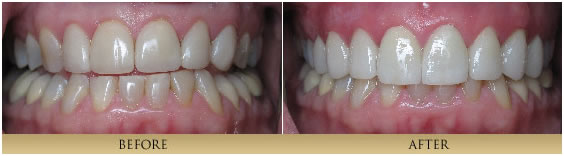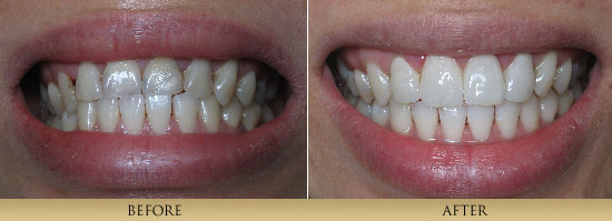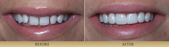 Porcelain Veneers are thin, strong, custom-made porcelain restorations which are bonded to a prepared tooth. The result is a restoration that mimics natural, beautiful tooth structure. The artistic fabrication of Porcelain Veneers contributes greatly to the final result. Therefore we are careful to work with only highly skilled, artistic ceramists. This process is generally completed in 2 visits about a month apart. Many patients simply have dentistry that has outlived its intended life. Dentists Dr. xxxxx are primarily concerned with the health of our patient′s teeth. Cracked teeth and leaking, worn out fillings compromise the health of one′s mouth. By replacing old fillings and cracked tooth structure with Porcelain Inlays or Porcelain Onlays, we are able to achieve a conservative restoration, saving all the healthy tooth structure that remains. A strong piece of porcelain is fabricated and bonded onto the tooth, for a natural looking restoration that strengthens the tooth unlike silver, mercury fillings which actually weaken a tooth and frequently cause teeth to fracture. Bonding is a very conservative means to repair chipped, discolored or misaligned teeth. It is a one-visit procedure that utilizes composite resin material sculpted directly onto the existing tooth. Minimal preparation is needed to achieve the desired result. Although not as long lasting or strong as all-porcelain restorations, this conservative and aesthetic procedure has enhanced the smiles of many of our patients. Paitent 1This patient didn't like how her teeth looked in the front. She had large composite fillings placed which had discolored and chipped. Also the position of the edge of the 2 front teeth was wrong. With veneers we were able to change things around and give her a correct smile. (4 porcelain veneers)